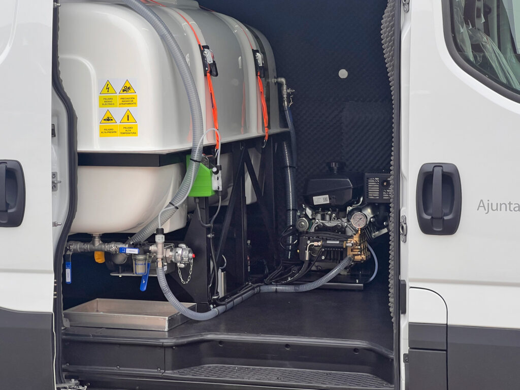 Los hidrolimpiadores de alta presión son equipos muy polivalentes utilizados en todo tipo de tareas de limpieza urbana. Pueden estar instalados sobre furgones cerrados o cajas abiertas, y pueden trabajar con agua fría y caliente. Los equipos están completos para ser instalados en vehículos de pequeño tonelaje, lo que permite disponer de la maquinaria sin necesidad de que el operario disponga de carnet específico.