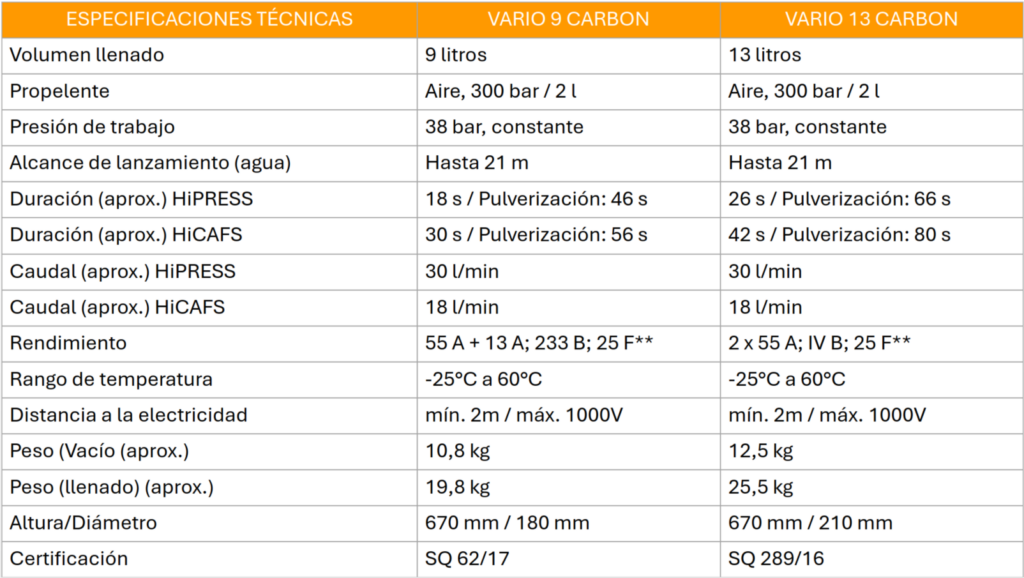 ¡Cuando ocurre un incendio de automóvil, puedes empezar a combatir el fuego de inmediato! Puedes comenzar a extinguir con el VARIO Carbon antes de que los grandes camiones de bomberos estén listos.