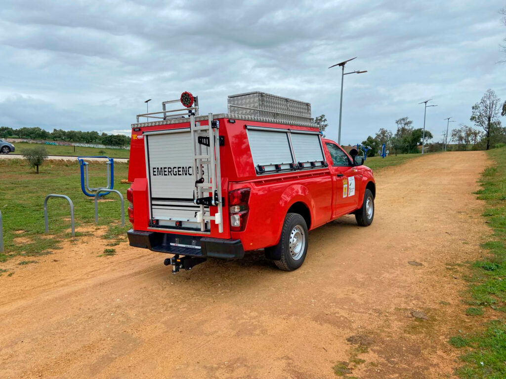 Para la extinción de incendios, el vehículo dispone de un depósito de agua con capacidad de 400 litros, conectado a una bomba de presión que ofrece 55 l/min a 40 bar, lo que permite actuar eficazmente en conatos de incendio y pequeñas intervenciones. La devanadera equipada con 60 metros de manguera garantiza un alcance operativo amplio sin necesidad de mover constantemente el vehículo.